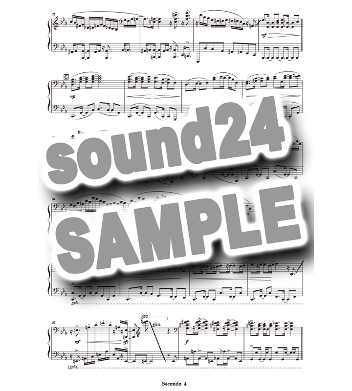 プリモは、アルペジオ、グリッサンドなど装飾音を多用し、くり返し出てくるテーマに様々なバリエーションを盛り込んで、華やかさを再現しています。 セコンドは、ベースラインの同じフレーズを保ちつつ、リズムキープをする事が曲をまとめるポイントです。また、ペダルの操作もノリを途切れさせない為の重要な要素になっています。間奏はsound24オリジナルで自由に「Tank!」の世界を展開しています。