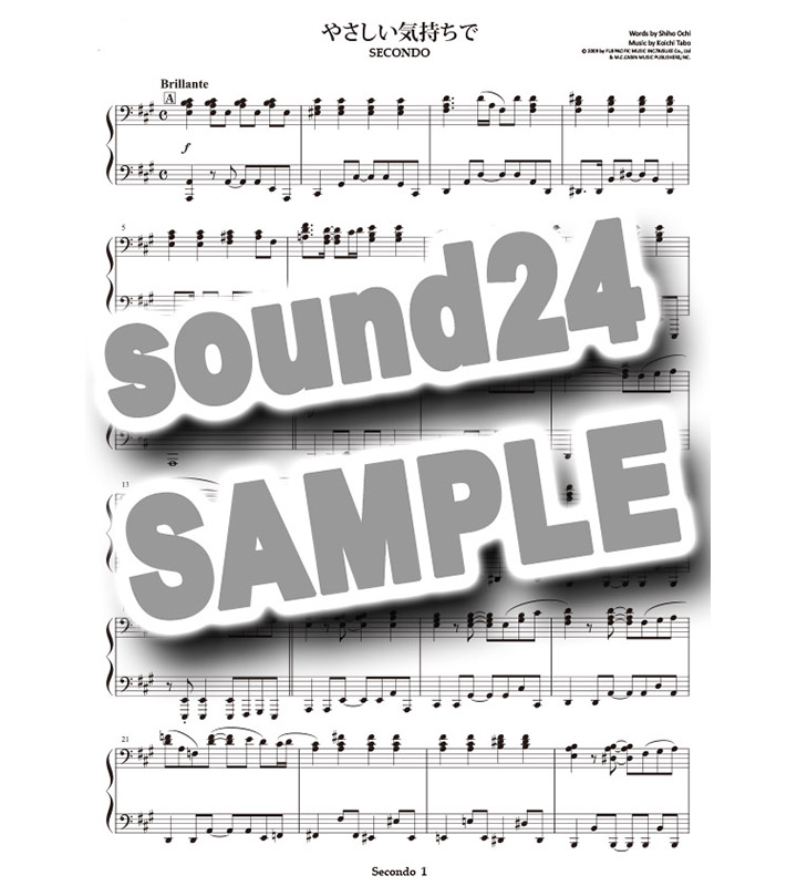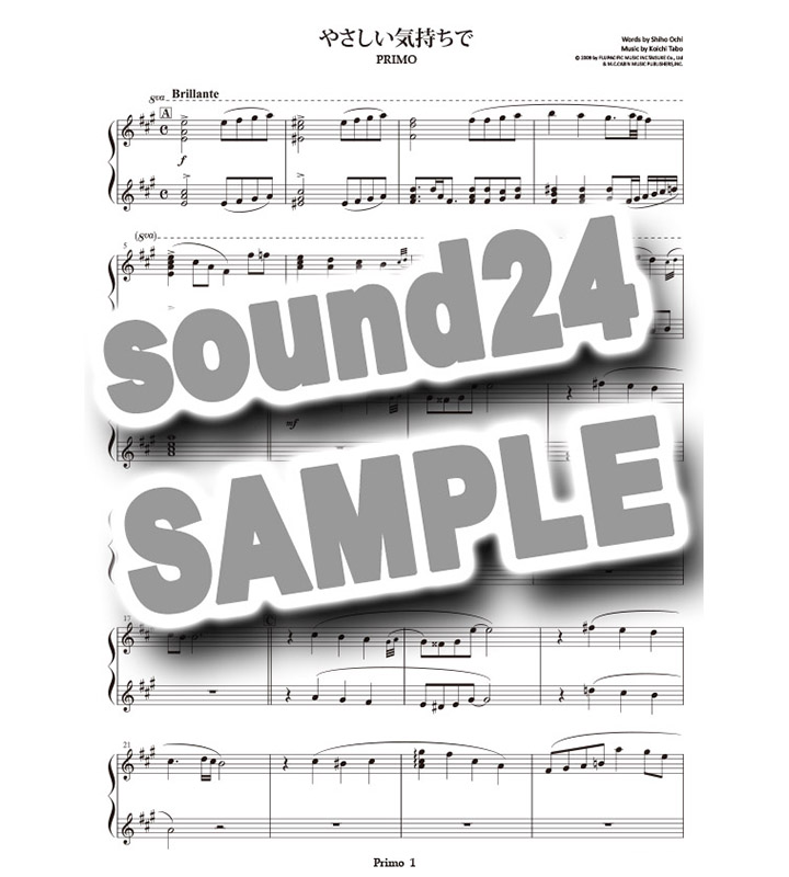 曲名:やさしい気持ちでアーティスト:Superfly作曲者:多保 孝演奏スタイル:ピアノ4手連弾譜面構成:ピース譜 (10ページ/112小節)仕様:サイズ:縦309ミリ:横227ミリ(見開きA3サイズ大)/中紙:楽譜面 135K(一般的なピアノピースと同等/表紙:200K(楽譜を立てた時に折れ曲がらないよう適度に厚い)※この商品は、JASRAC(社団法人 日本音楽著作権協会)ならびに、権利者の出版利用許諾を得ている作品ですので、安心してお求め頂けます。