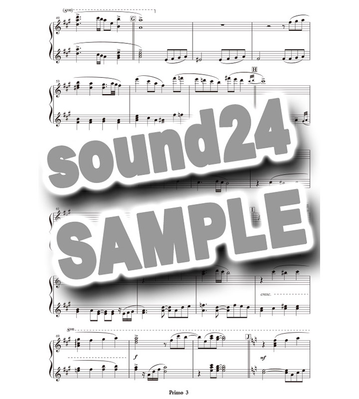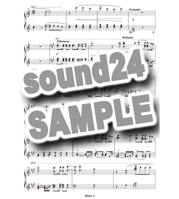 全体とおしてフォルテが多いため、ピアノ・メゾピアノの箇所を意識し、強弱によるメリハリのある演奏をしてください。そうすることでノリの良さが表現できます。また、クレッシェンド・デクレッシェンド・リタルダンドなどをお互いに意識して演奏することにより、連弾の楽しさを感じていただけます。三連と16分の意図的使い分けがポイントとなります。サビ前の充分な「タメ」と、2番のサビをより強調することで、曲全体がまとまります。